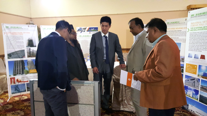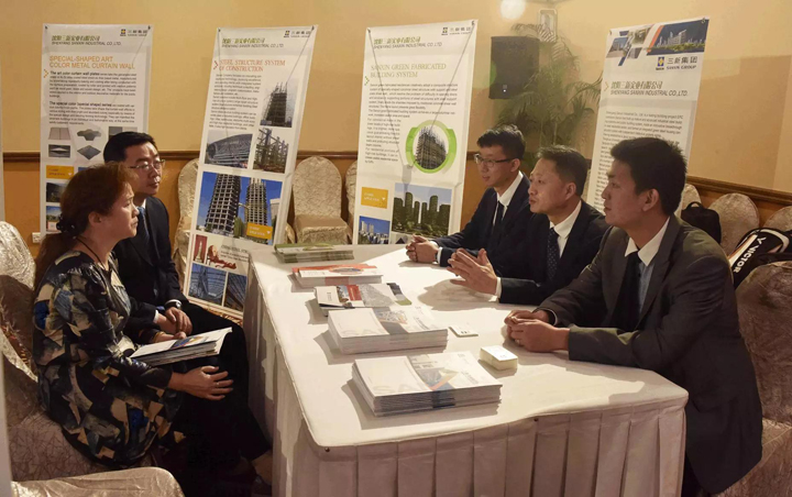 在推介會(huì)上,來(lái)自中孟的近70位企業(yè)代表就孟加拉國(guó)市場(chǎng)拓展、企業(yè)產(chǎn)品和項(xiàng)目合作進(jìn)行了面對(duì)面的交流對(duì)接,涉及基建、能源、電力等領(lǐng)域。會(huì)議期間,三新集團(tuán)展位受到廣泛關(guān)注。獨(dú)具特色的公共建筑、民用建筑及工業(yè)建筑產(chǎn)品吸引了眾多孟加拉國(guó)客戶及廠商,并進(jìn)行了咨詢及多場(chǎng)洽談會(huì)晤,簽訂了多項(xiàng)合作及銷售協(xié)議。同時(shí),公司還與中國(guó)電建、中國(guó)能建、中國(guó)石油、中國(guó)東北電力第三工程有限公司、中成進(jìn)出口股份有限公司等國(guó)內(nèi)知名廠商進(jìn)行了合作洽談,強(qiáng)強(qiáng)聯(lián)合,共同助力開拓孟加拉市場(chǎng)。