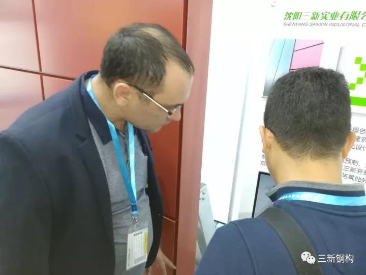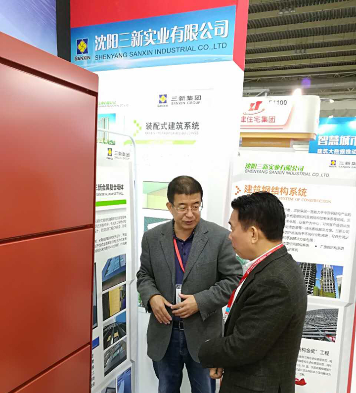 公司由李慶??偣こ處熂瓣惲⑿赂笨値ш爡⒓恿吮敬问?偨?jīng)理洪長禧先生百忙之中也轉(zhuǎn)道參會。公司在展會上重點推出了獨具特色的三新綠色裝配式建筑體系、工業(yè)鋼結(jié)構(gòu)建筑及公共鋼結(jié)構(gòu)建筑體系。公司展區(qū)吸引了大批參觀者,拍照樣品及觀看視頻展示,索取資料,并與專業(yè)服務(wù)人員進行咨詢洽談。其中有許多歐美客商駐足了解我公司的金屬幕墻產(chǎn)品。