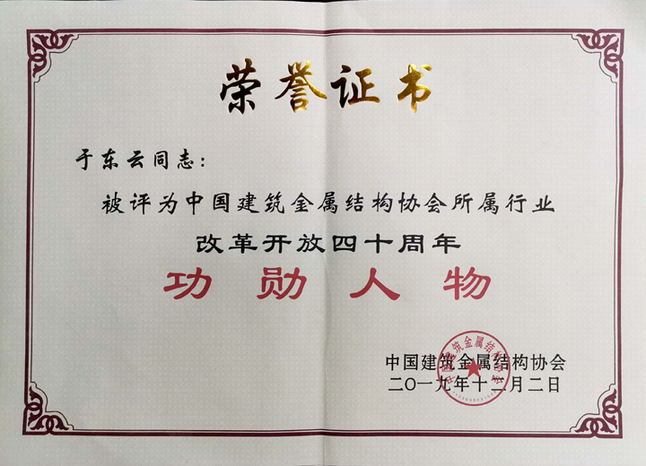 于東云董事長(zhǎng)榮獲“中建金協(xié)所屬行業(yè)改革開放四十年突出功勛人物”稱號(hào)