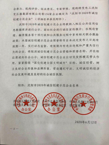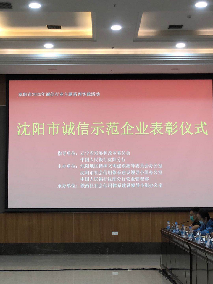 9月10日下午,沈陽(yáng)市文明辦、市信用辦聯(lián)合召開(kāi)“沈陽(yáng)市2020年誠(chéng)信創(chuàng)建示范企業(yè)”表彰大會(huì)。我公司榮獲“沈陽(yáng)市2020年誠(chéng)信創(chuàng)建示范企業(yè)”稱(chēng)號(hào)。