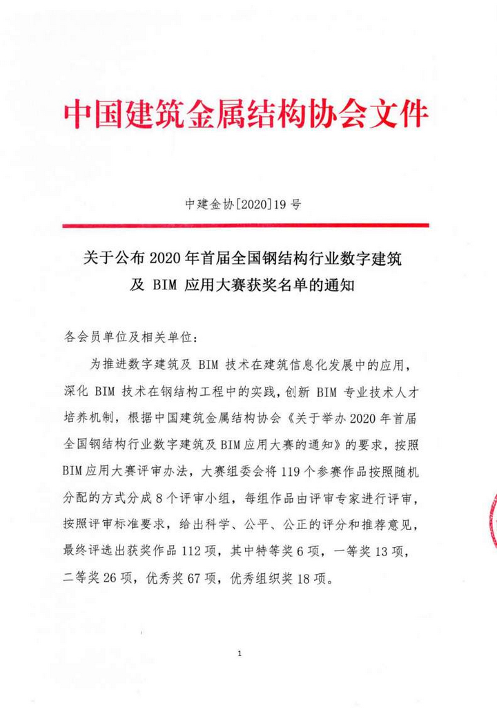 我公司張睿BIM團(tuán)隊(duì)斬獲2020年首屆全國(guó)鋼結(jié)構(gòu)行業(yè)BIM技術(shù)應(yīng)用大賽優(yōu)秀獎(jiǎng)