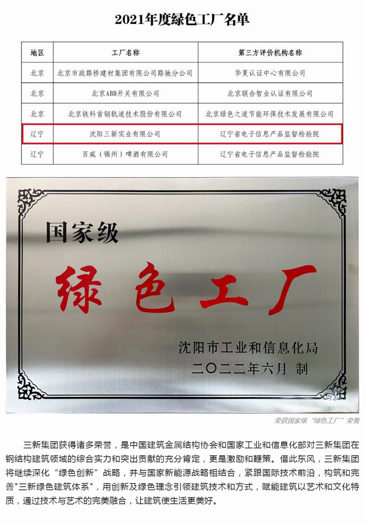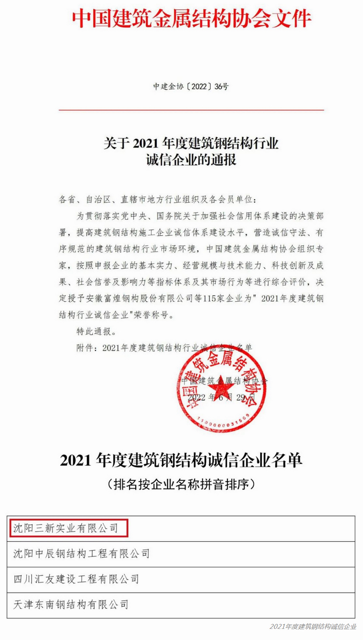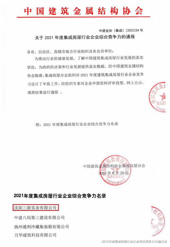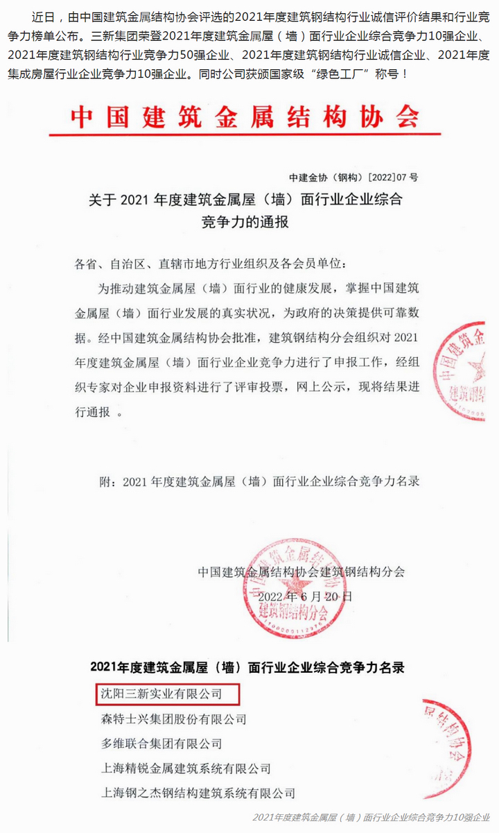 熱烈祝賀三新集團(tuán)榮獲“2021年度建筑金屬屋(墻)面行業(yè)企業(yè)綜合競(jìng)爭(zhēng)力10強(qiáng)企業(yè)”等多項(xiàng)殊榮!