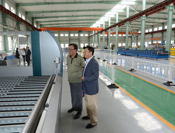 在公司總經(jīng)理洪長禧先生率領(lǐng)高層管理人員熱情引領(lǐng)下,考察團一行參觀了公司廠區(qū)和生產(chǎn)情況。洪總詳細介紹了企業(yè)情況。在公司金屬板材加工車間,姚兵先生及嘉賓饒有興致地參觀了從德國、意大利、瑞士等國家引進的數(shù)字化金屬板材柔性生產(chǎn)線,并對公司的金屬幕墻產(chǎn)品進行了詳細的考察。