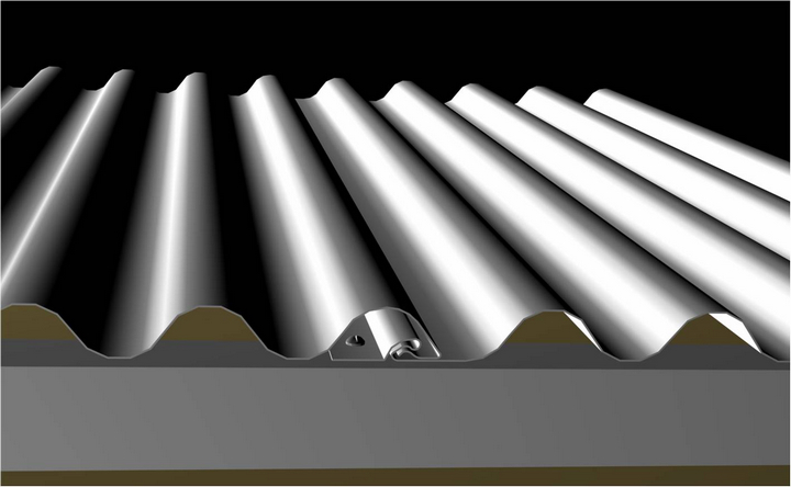 SX-310及SX-780 波紋板通過鍍鋅矩形管龍骨及專用連接角件固定于墻梁外側(cè),連接角件與龍骨之間采用自攻釘固定。